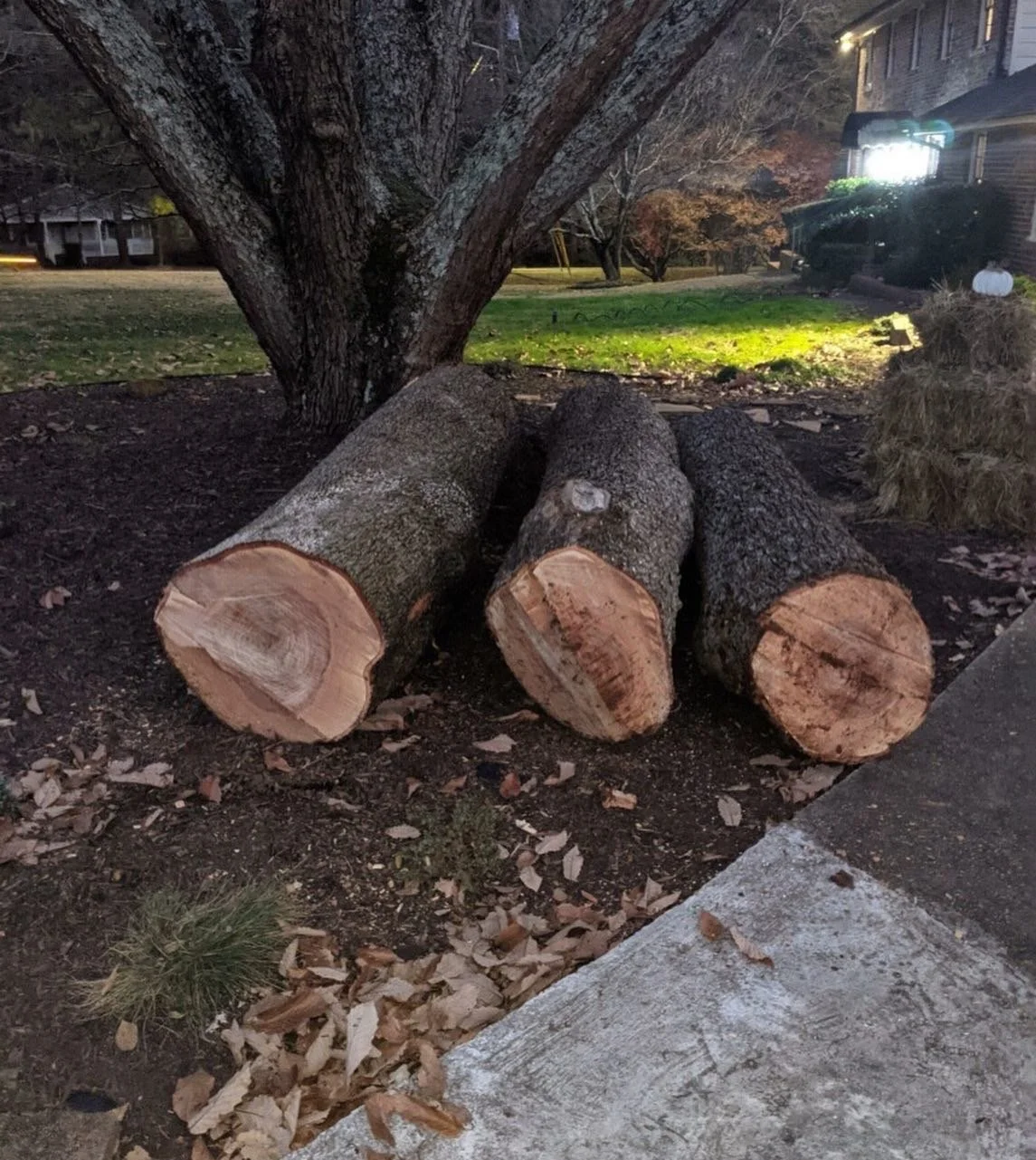 A beautiful Black Walnut in a Decatur neighborhood had to come down. They knew it was in poor health, but did not realize the first 20’ was completely hollow! We were able to salvage 4 decent logs from it. This is one of the gorgeous new forms this tree will live on as, a dinner table in the home it came from! VanVleet Woodworking turned three of the slabs into a family gathering place.