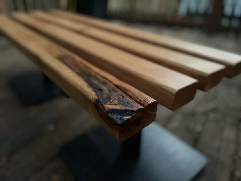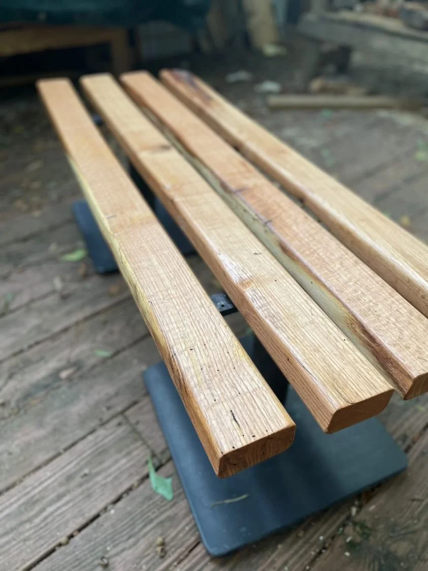 This Red Oak was donated from Smoke Rise, GA. One of its new forms is this sweet slat bench, created by an East Atlanta woodworker.