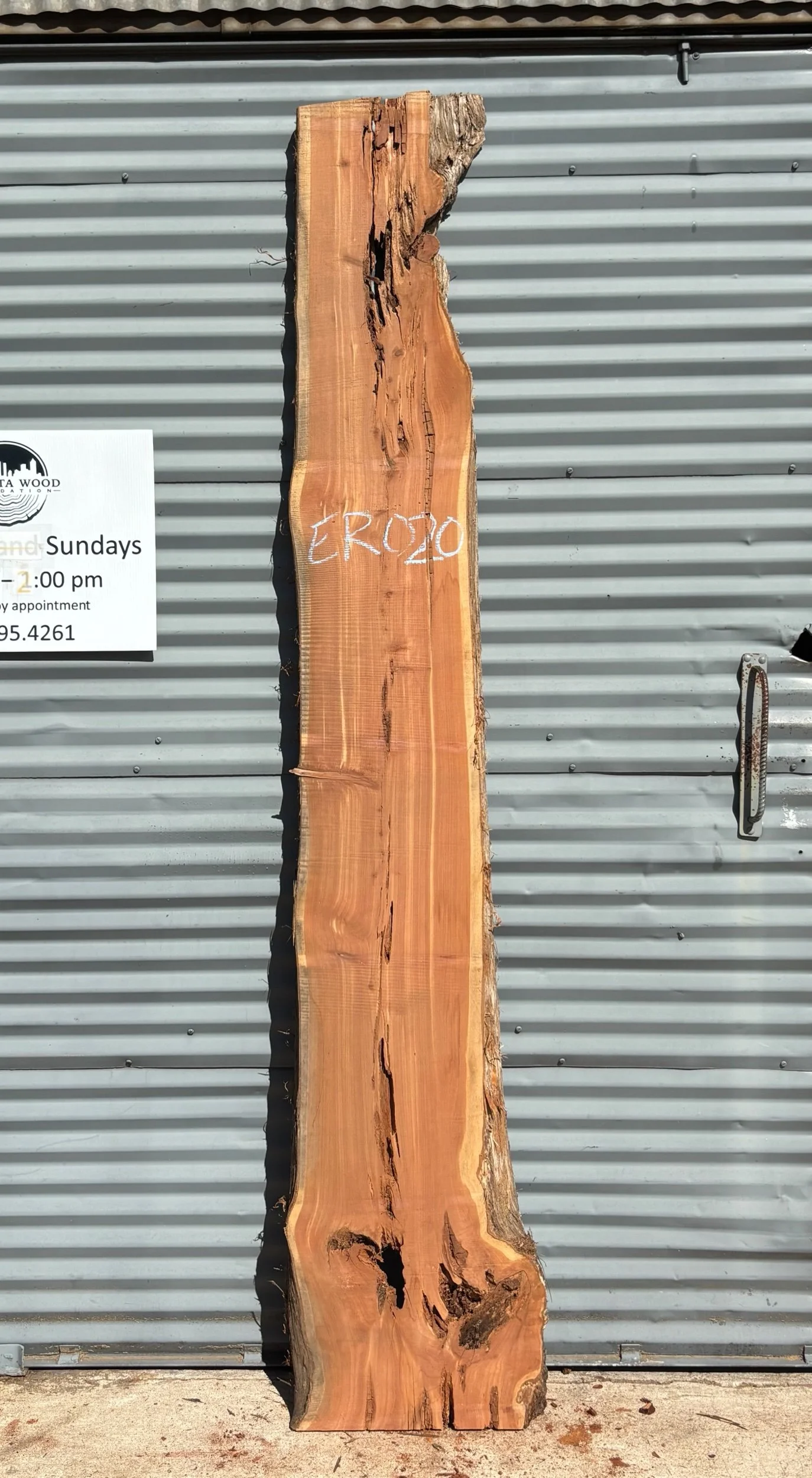 103" long x 10.5"- 19.75" wide x 2.5" thick Eastern Red Cedar Live Edge Slab.