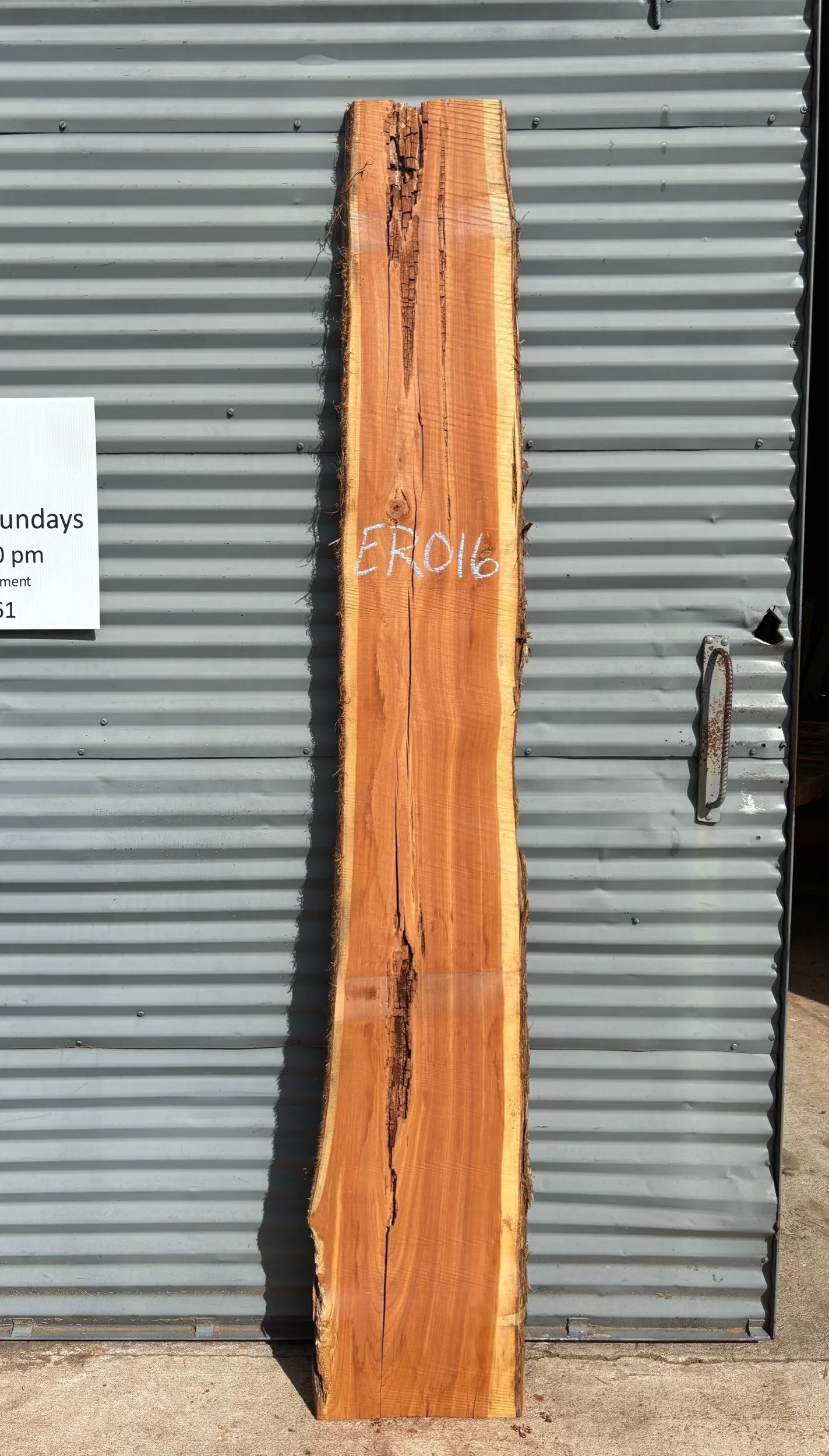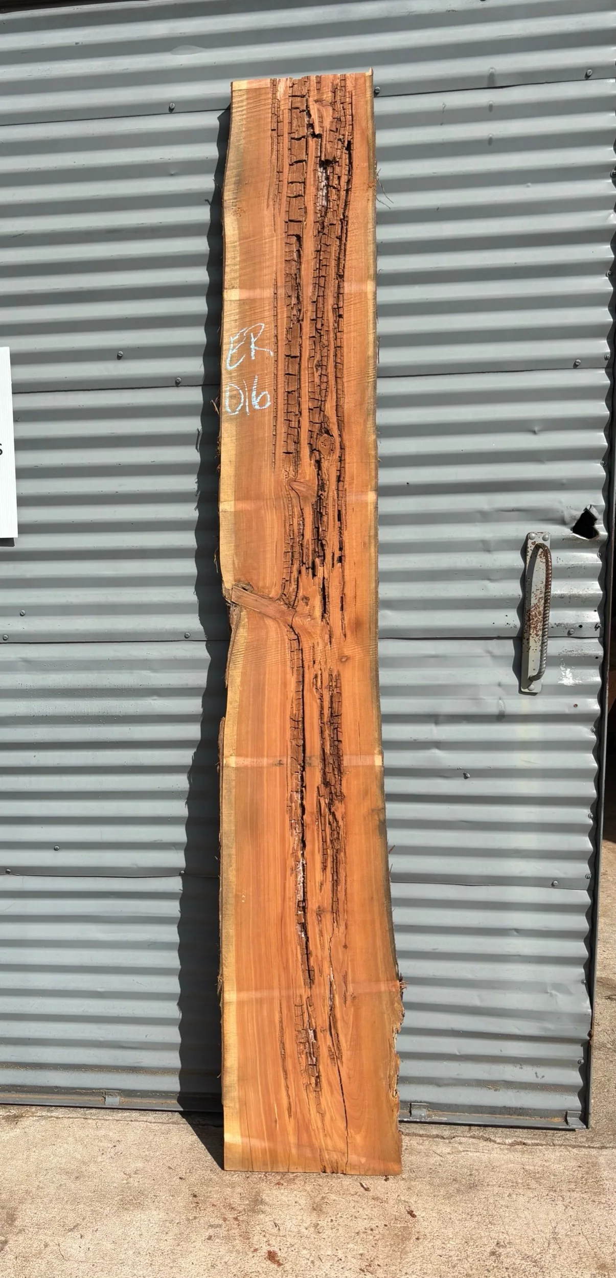 This tree was donated from Rockdale, GA. The tree was struck by lightning & it left dead streaks throughout the log. There is good wood in each slab, with streaks of crumbled wood in some.