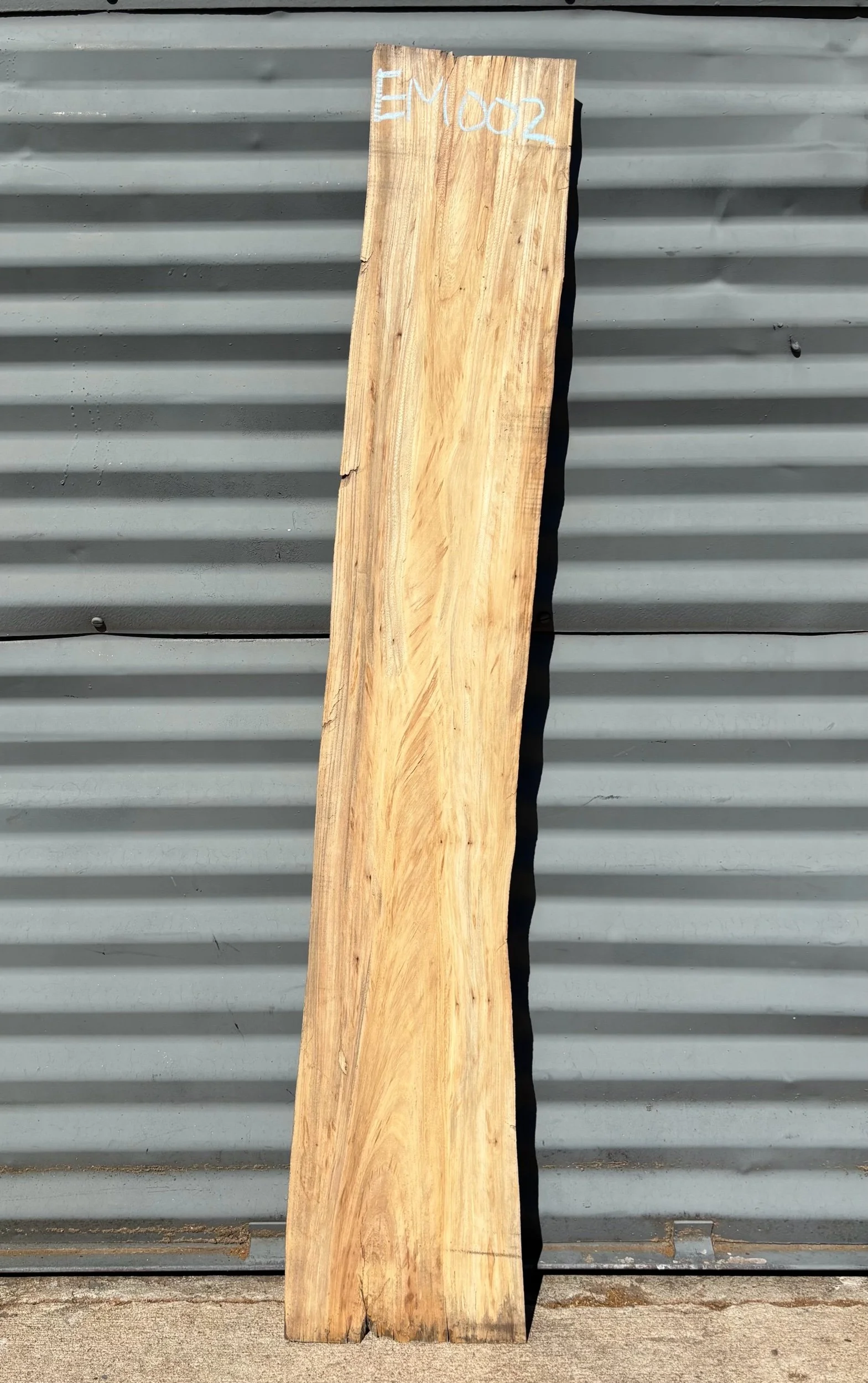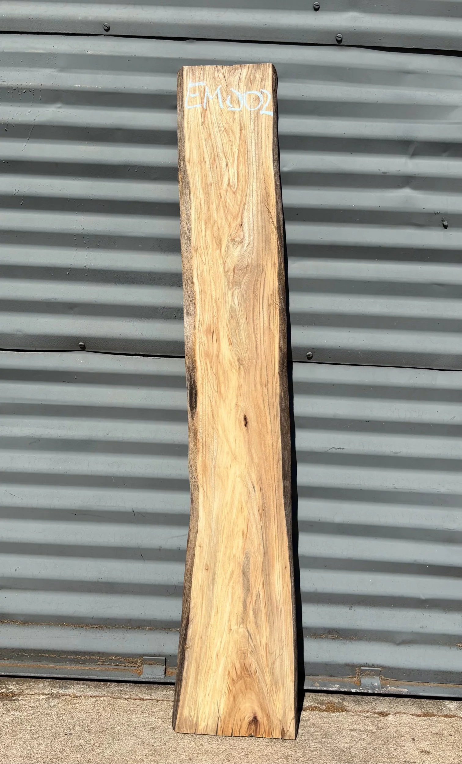 48” long x 7 3/8”- 8.5” wide x 1.25” thick American Elm Live Edge Slab.