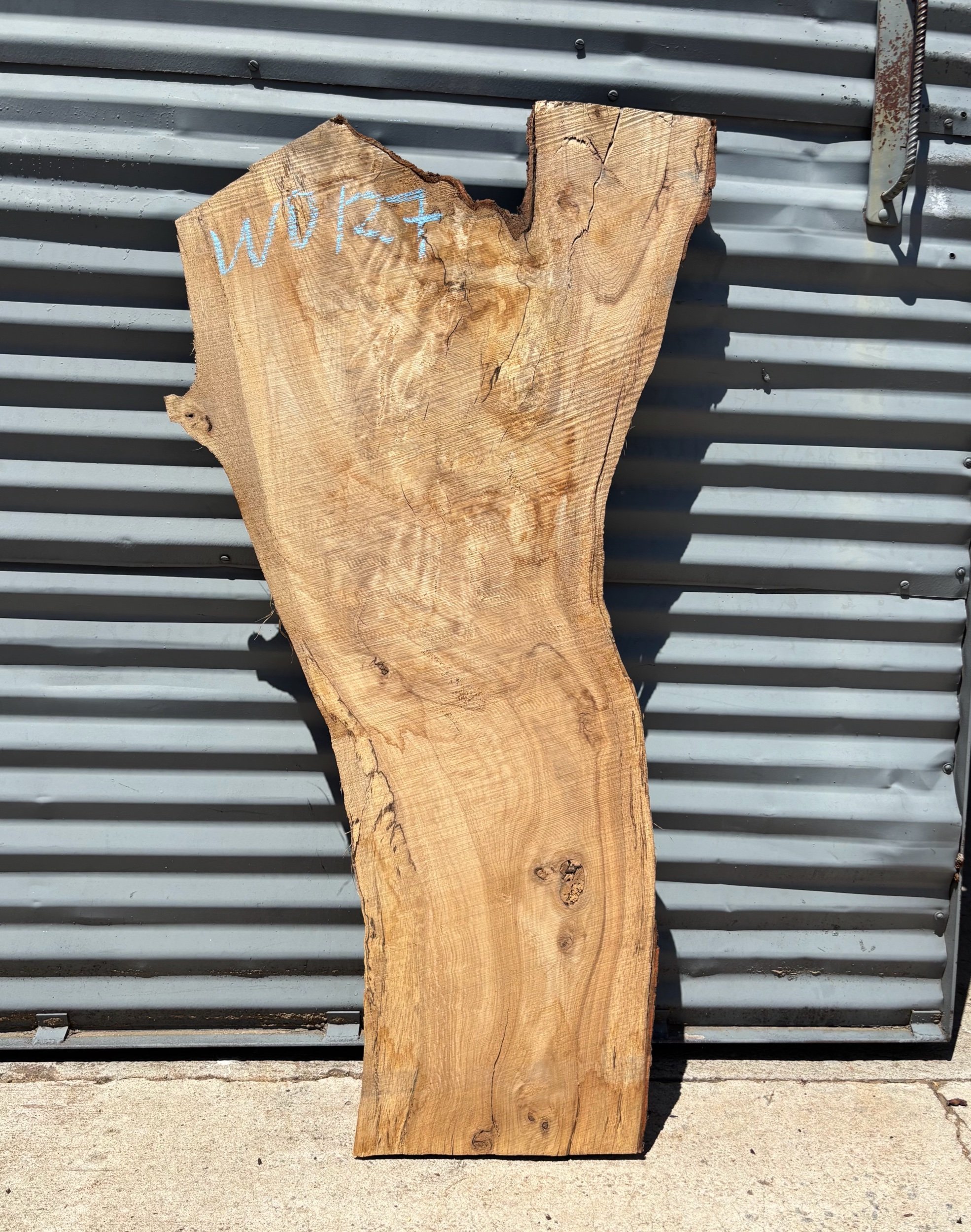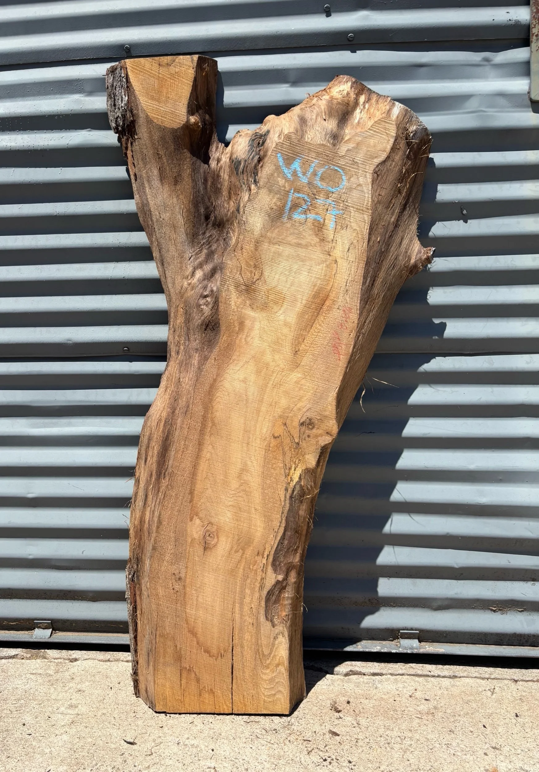 47" long x 13" - 24" wide x 2 5/8” thick White Oak Live Edge Slab. Kiln Dried.