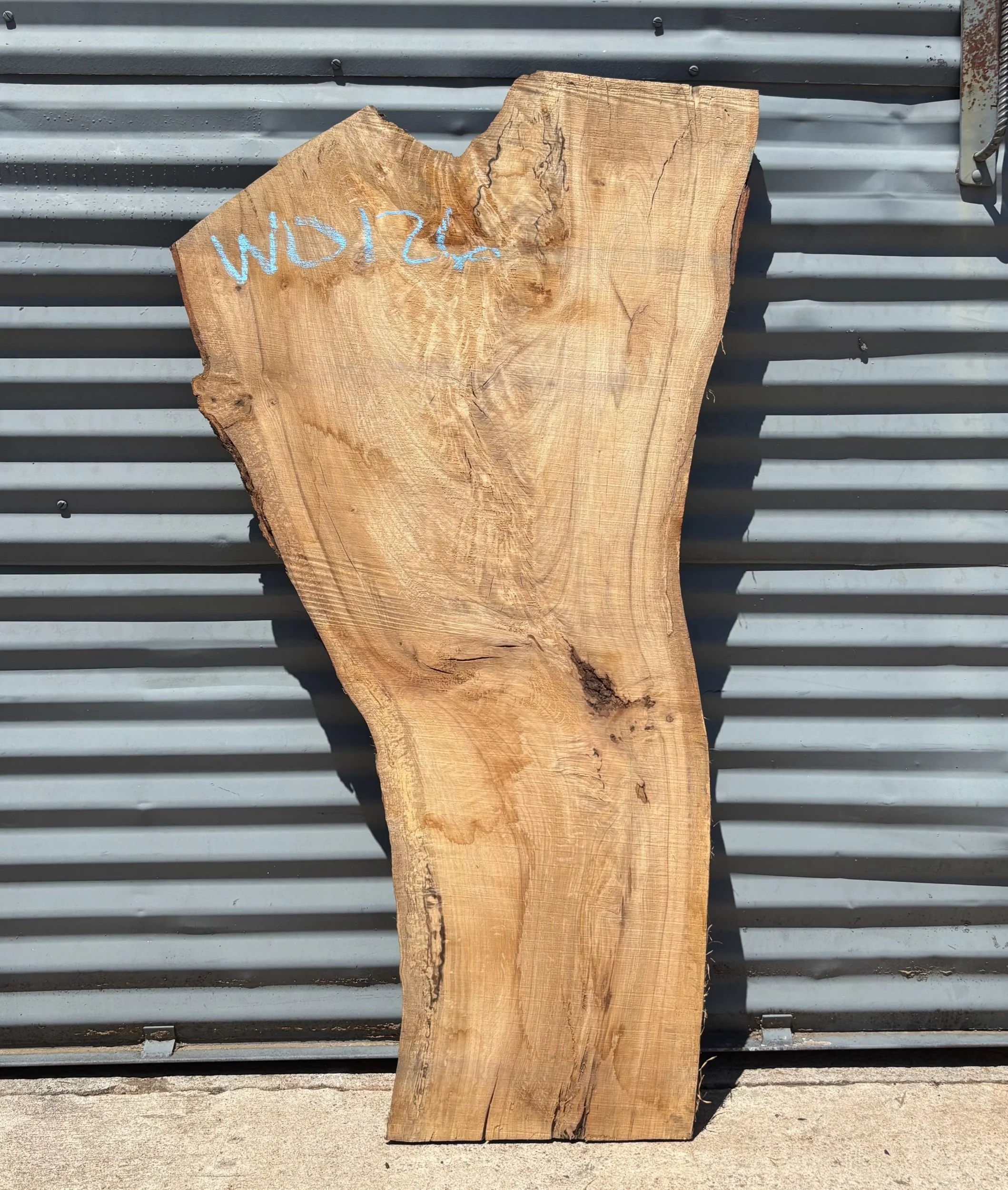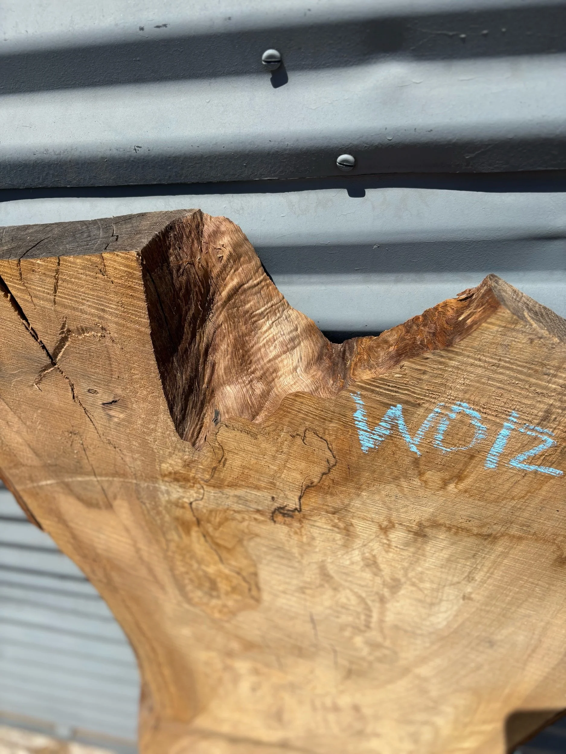 43" - 50" long x 12" - 27" wide x 2.5” thick White Oak Live Edge Slab. Kiln Dried.