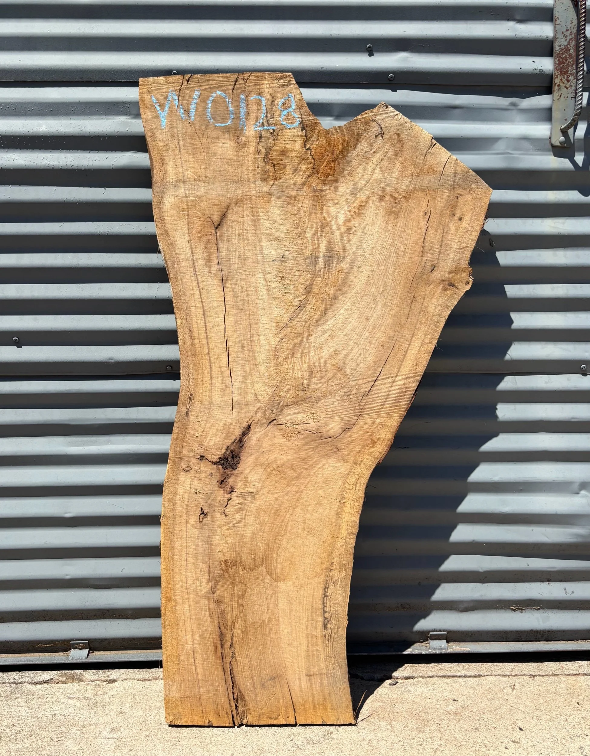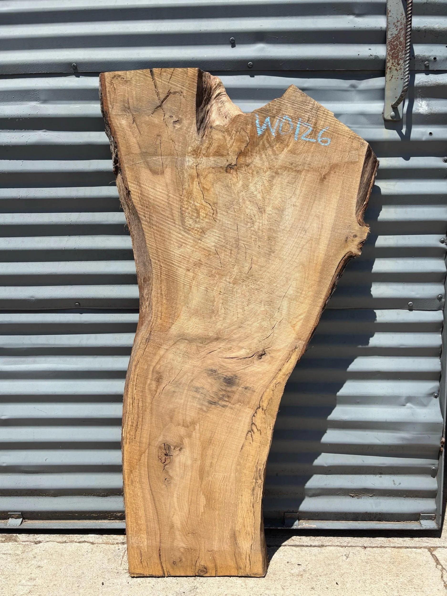 43" - 50" long x 12" - 27" wide x 2.5” thick White Oak Live Edge Slab.