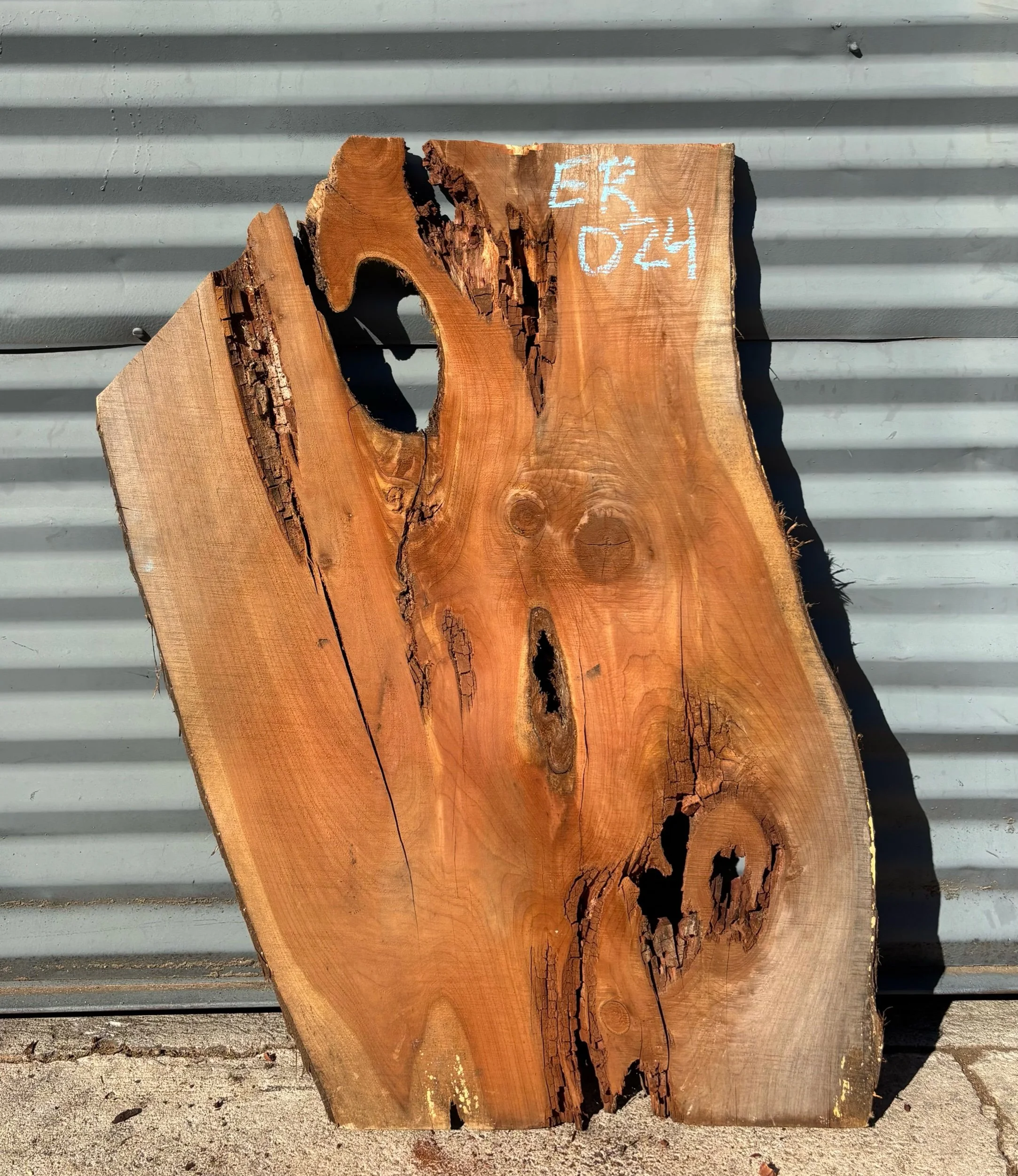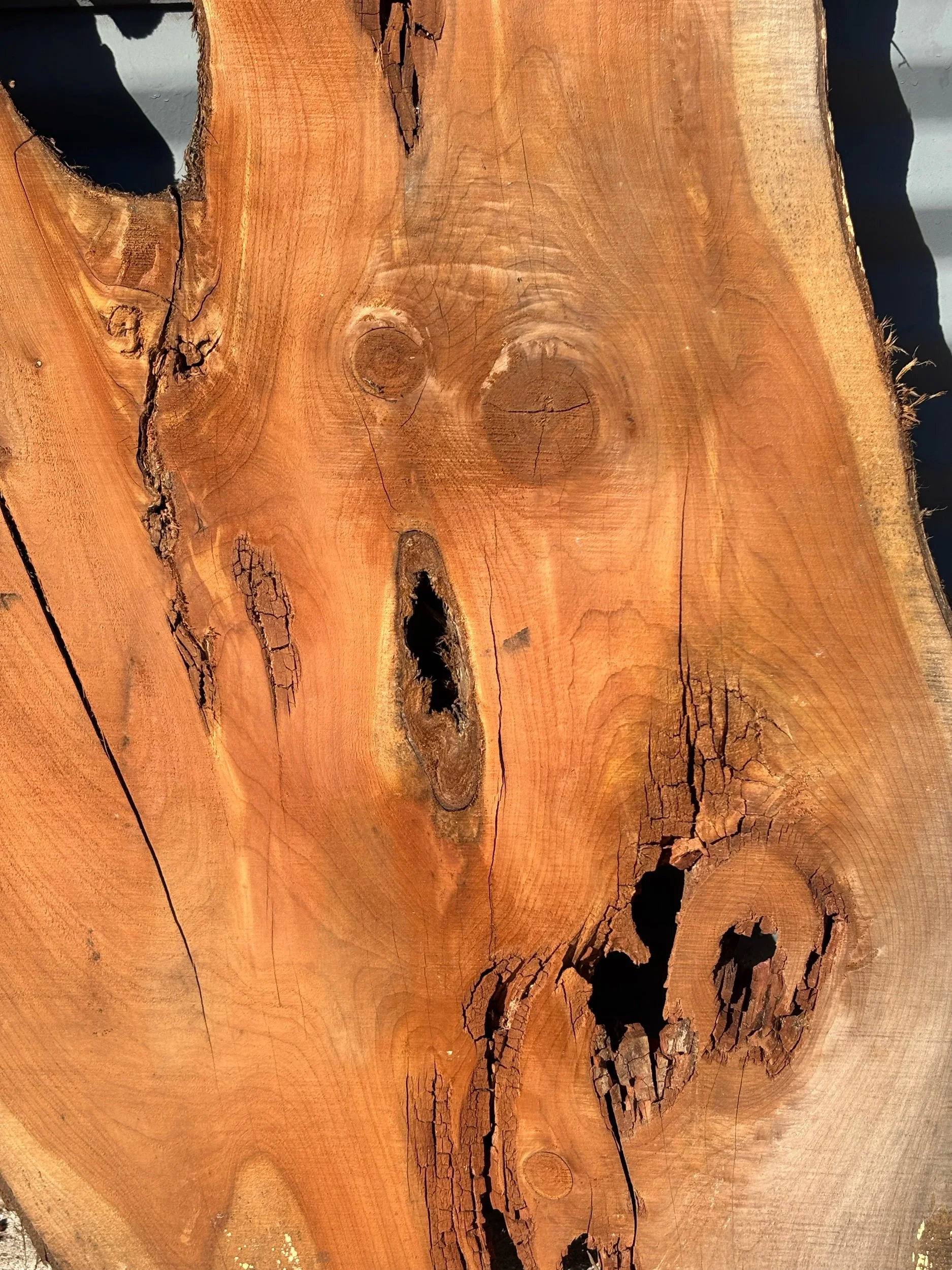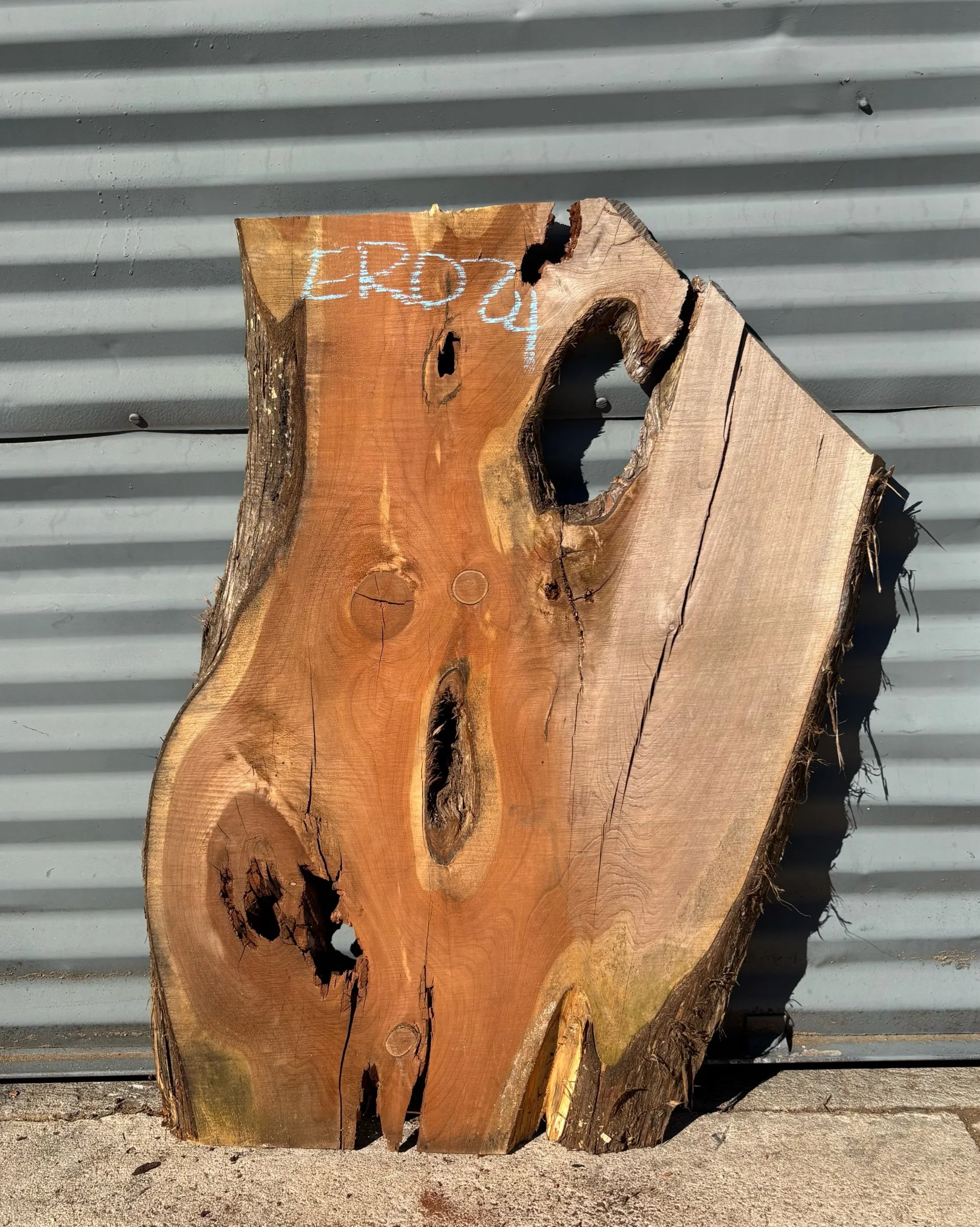 34" long x 17.75"- 24" wide x 1 1/8" thick Eastern Red Cedar Live Edge Slab. Kiln Dried.