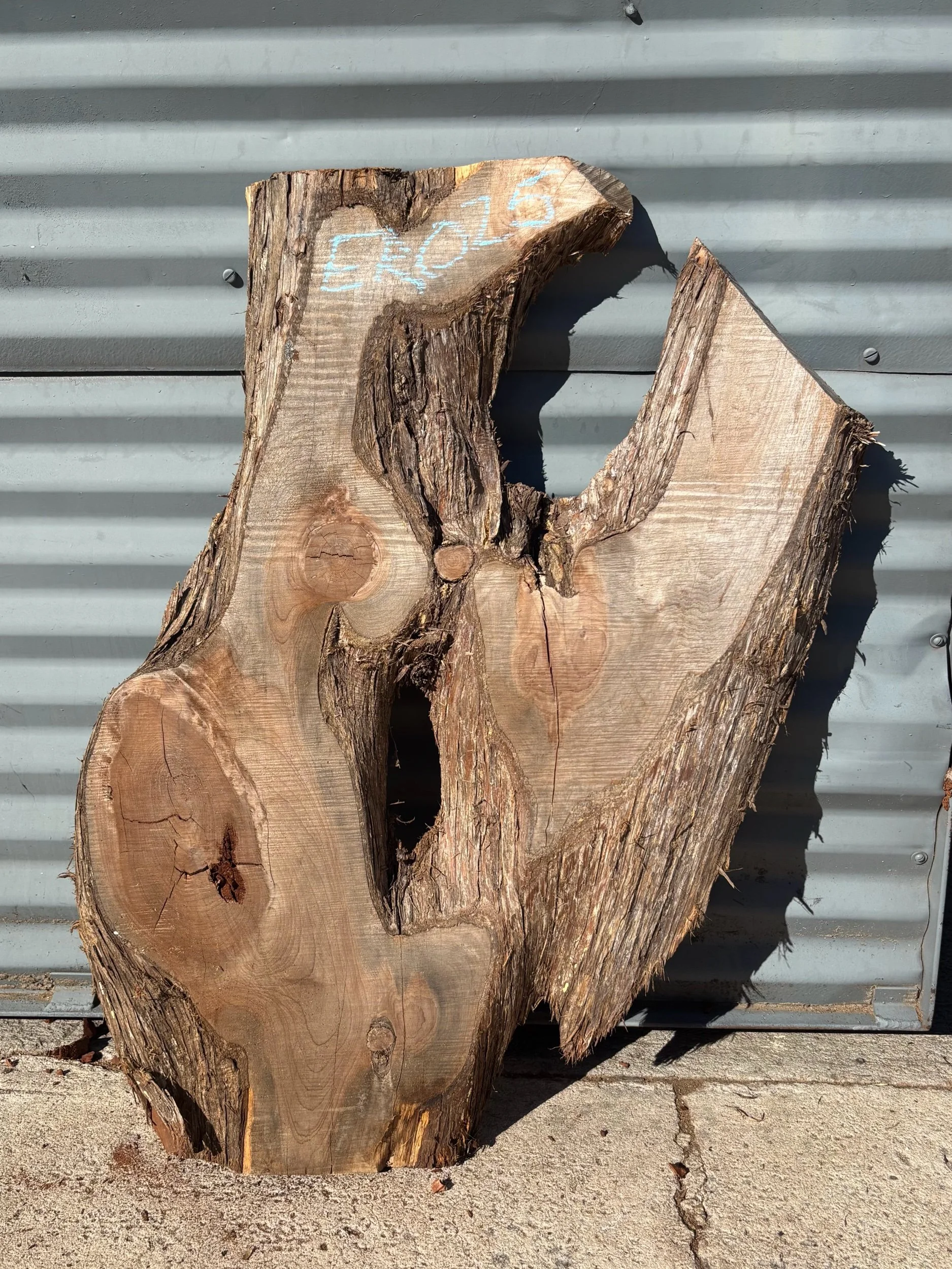 This tree was donated from Rockdale, GA. The tree was struck by lightning & it left dead streaks throughout the log. There is good wood in each slab, with streaks of crumbled wood in some.