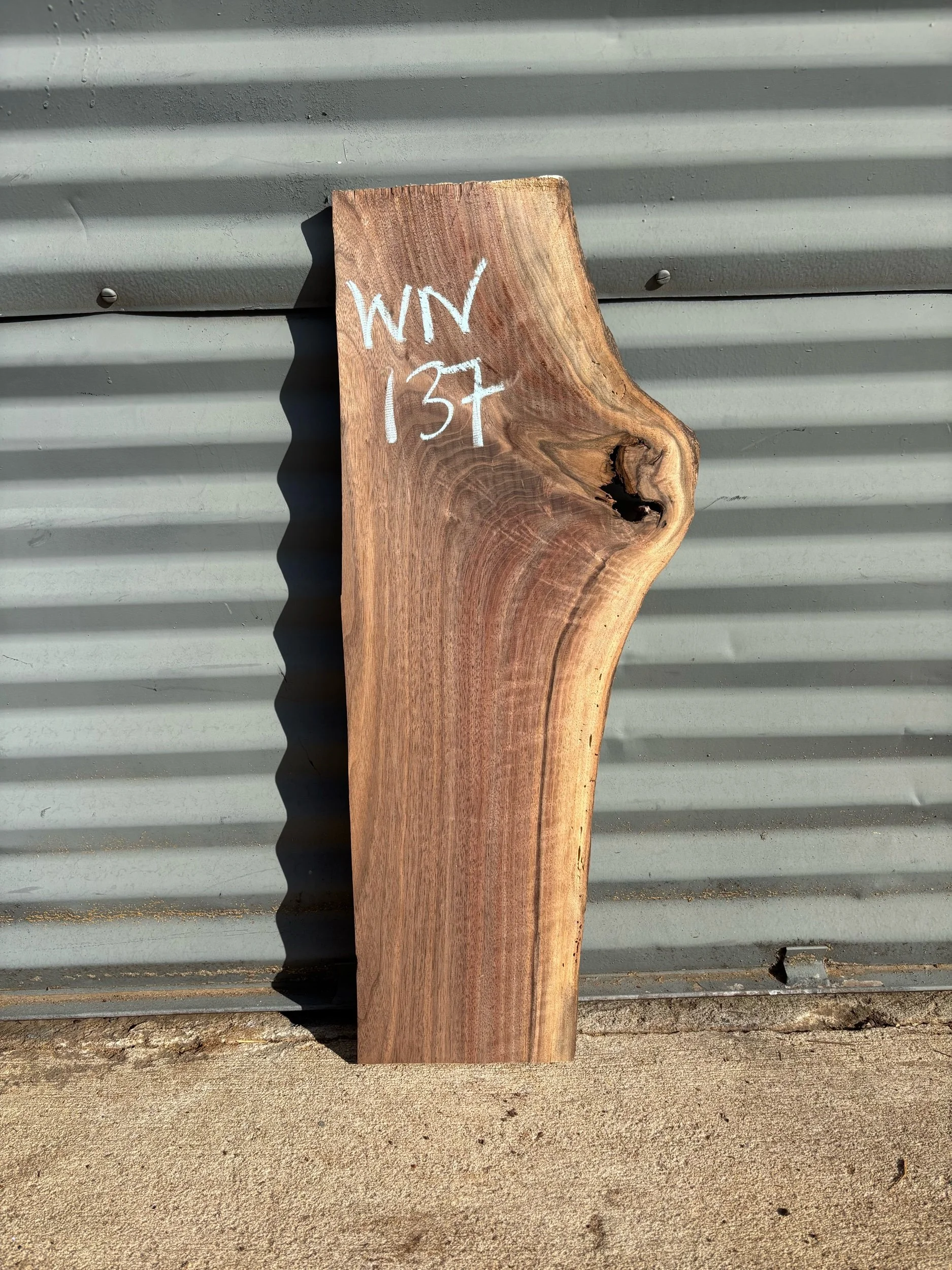 29” long x 7.5”-11 6/8” wide x .75” thick Black Walnut slab. Kiln Dried.