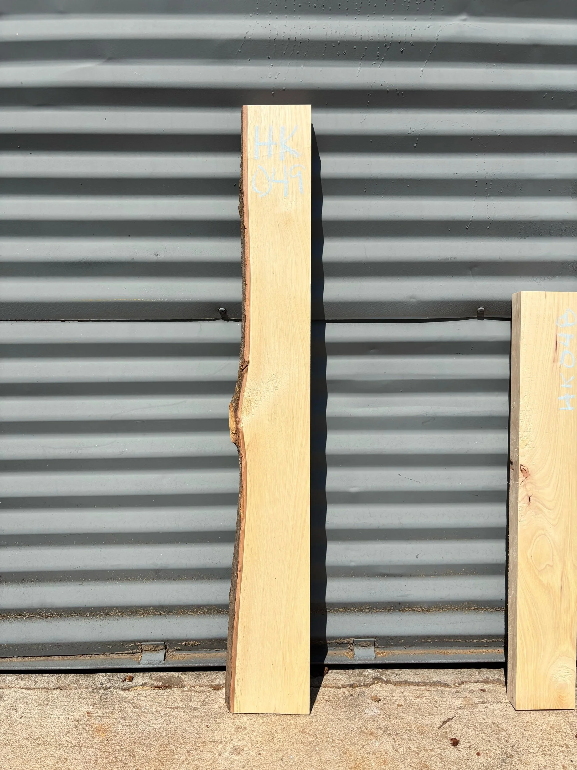 38.75” long x 4.25” - 5.5" wide x 1.75” thick Live Edge Hickory Slab. Kiln Dried.