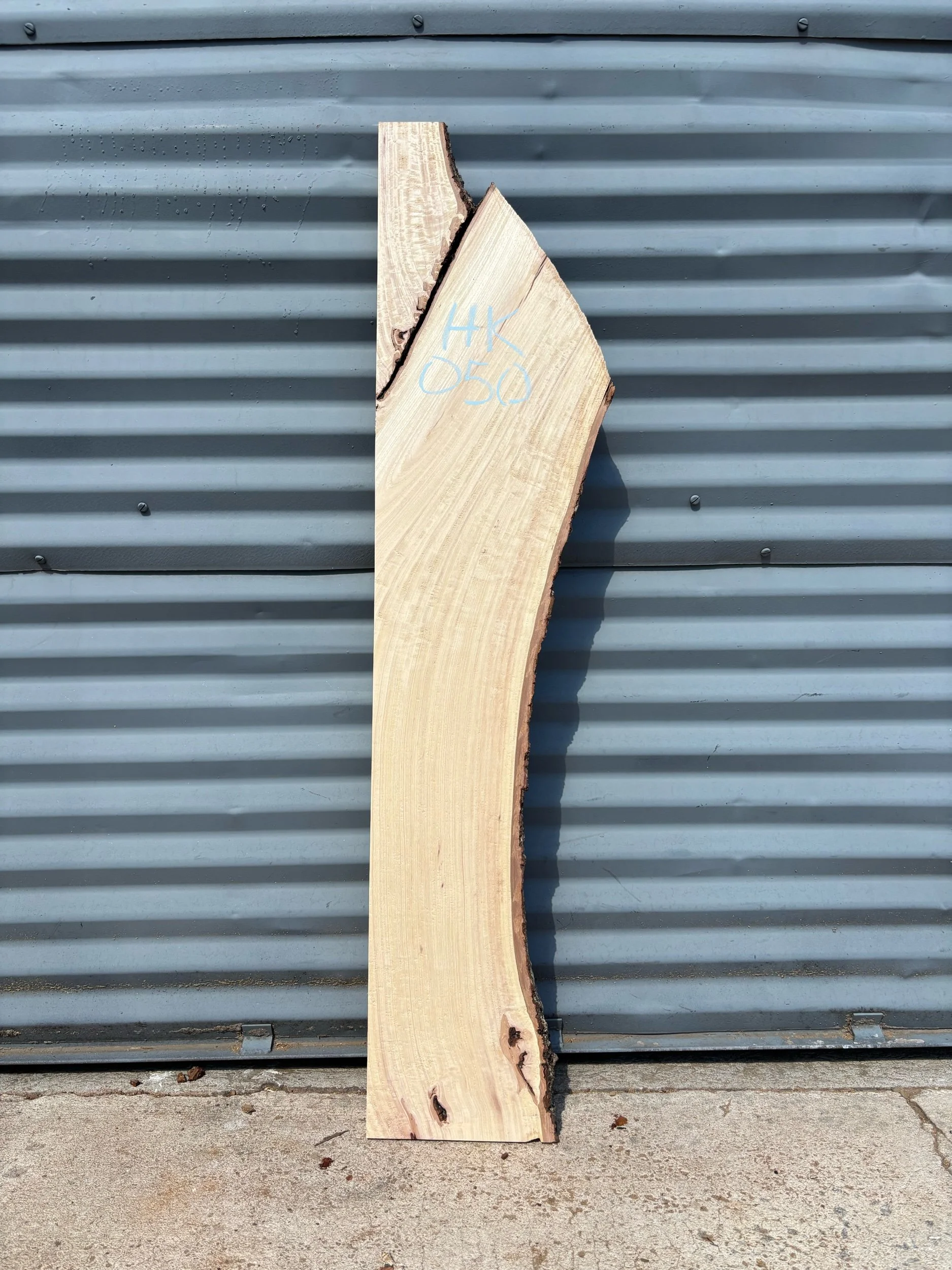 38.75” long x 4.25” - 5.5" wide x 1.75” thick Live Edge Hickory Slab.