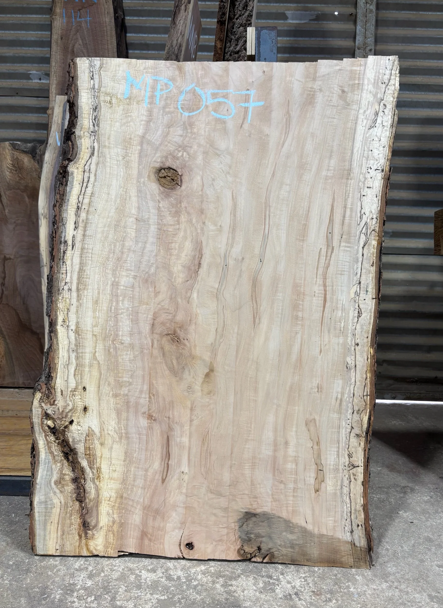40” long x 26.75”-28" wide x 1 11/16” thick Spalted Silver Maple Live Edge Slab.