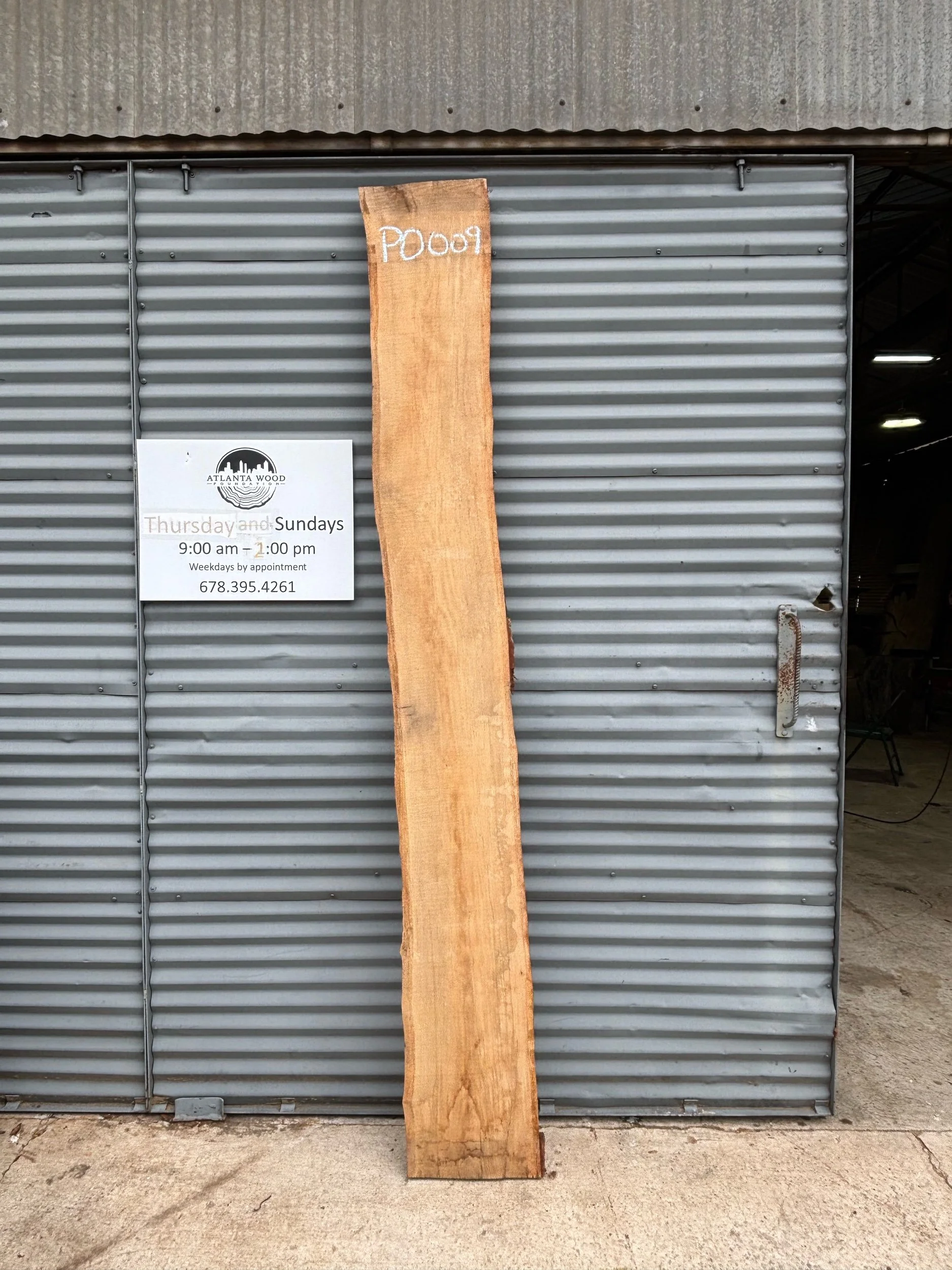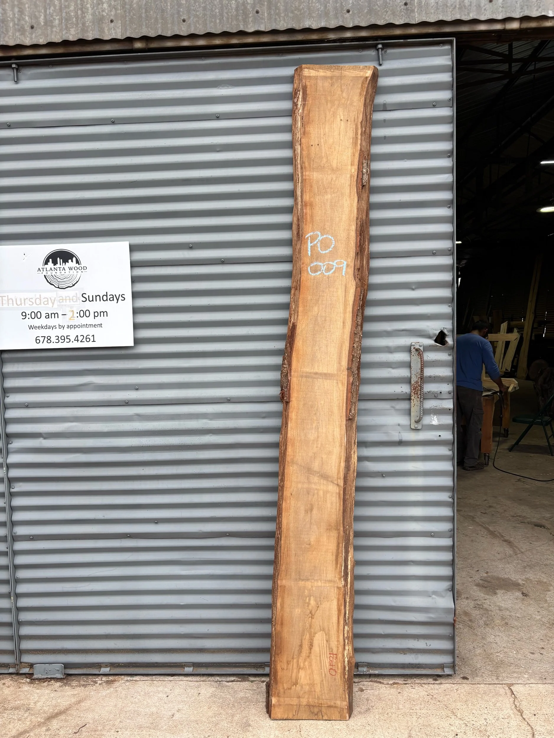 104.5” long x 13”-14.5” wide x 3” thick Post Oak Live Edge Slab.