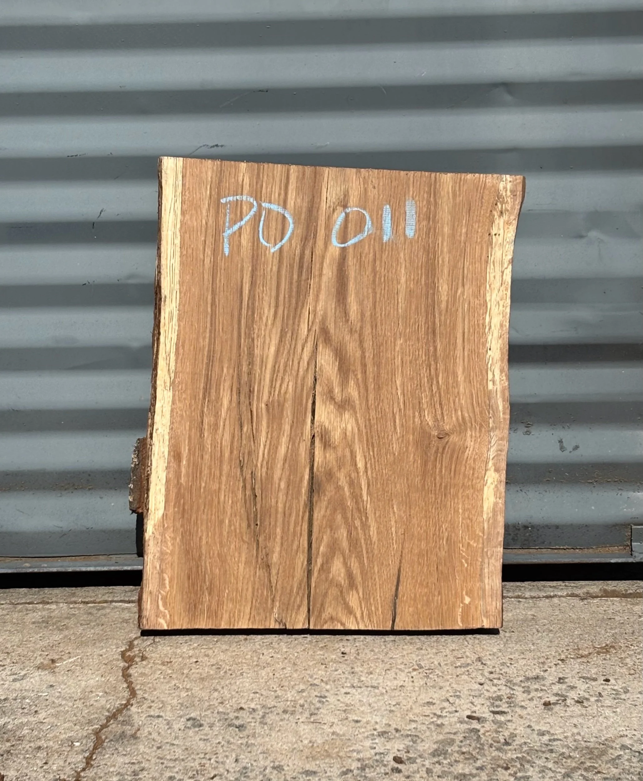 24.25” long x 13.5”-14.75” wide x 2.75” thick Post Oak Live Edge Slab. Kiln Dried.