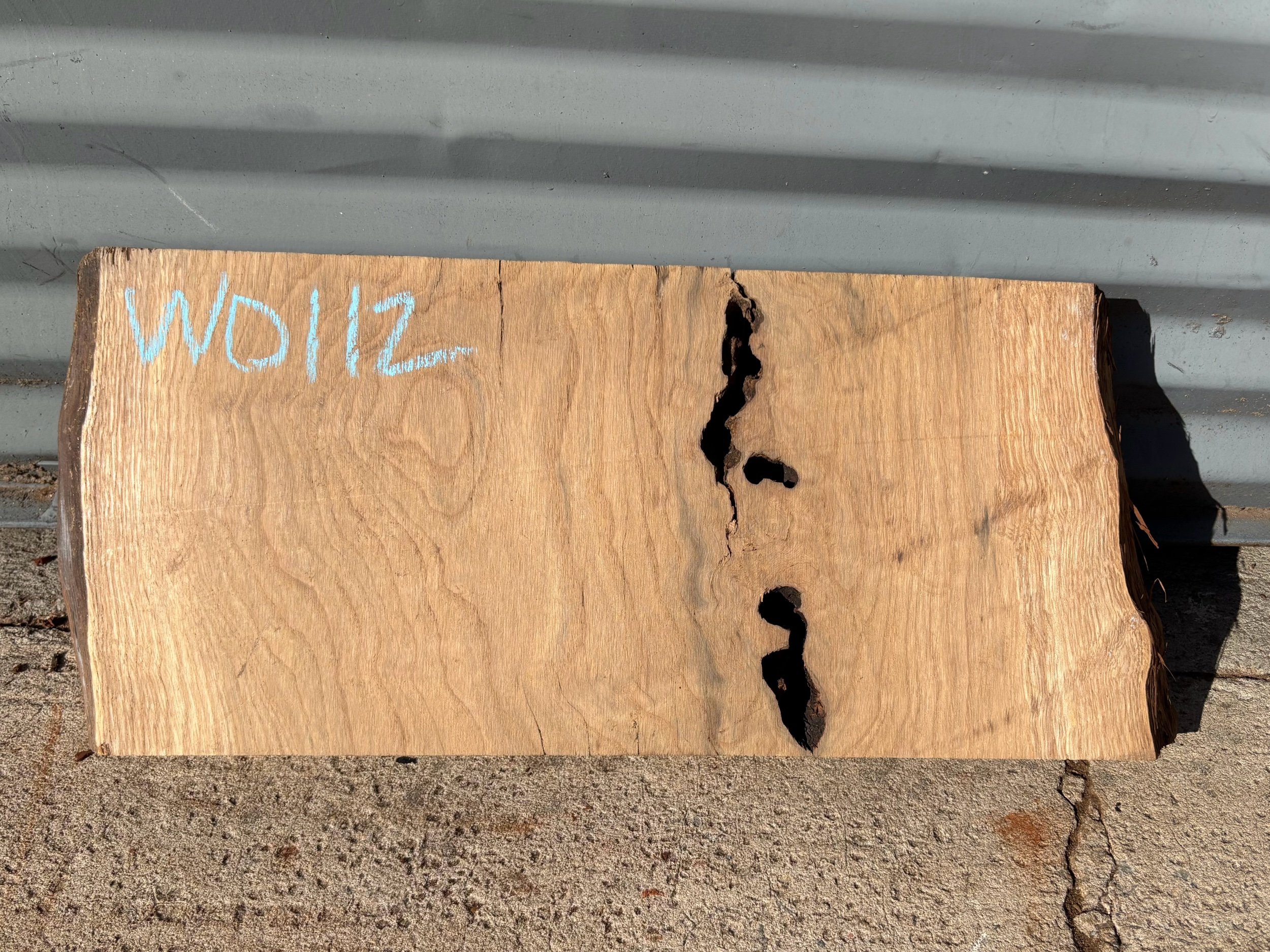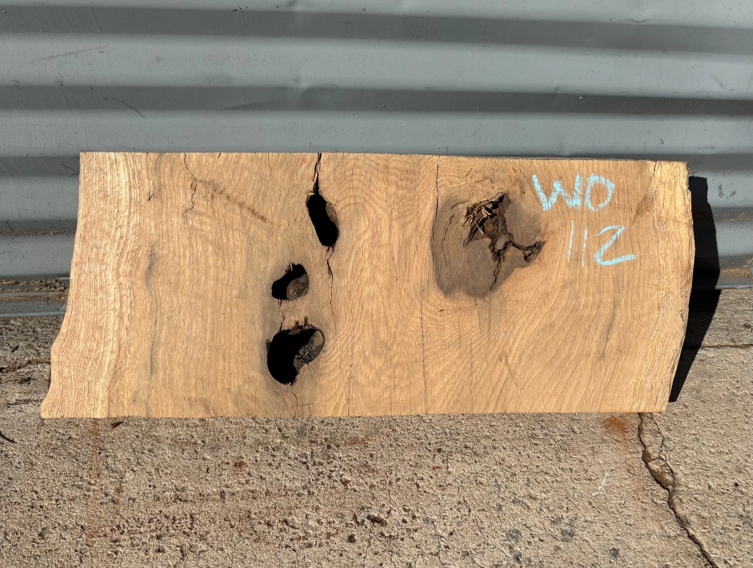 9 5/8” long x 22.25”- 23.25” wide x 2.25” thick White Oak Cut Off. Kiln Dried.