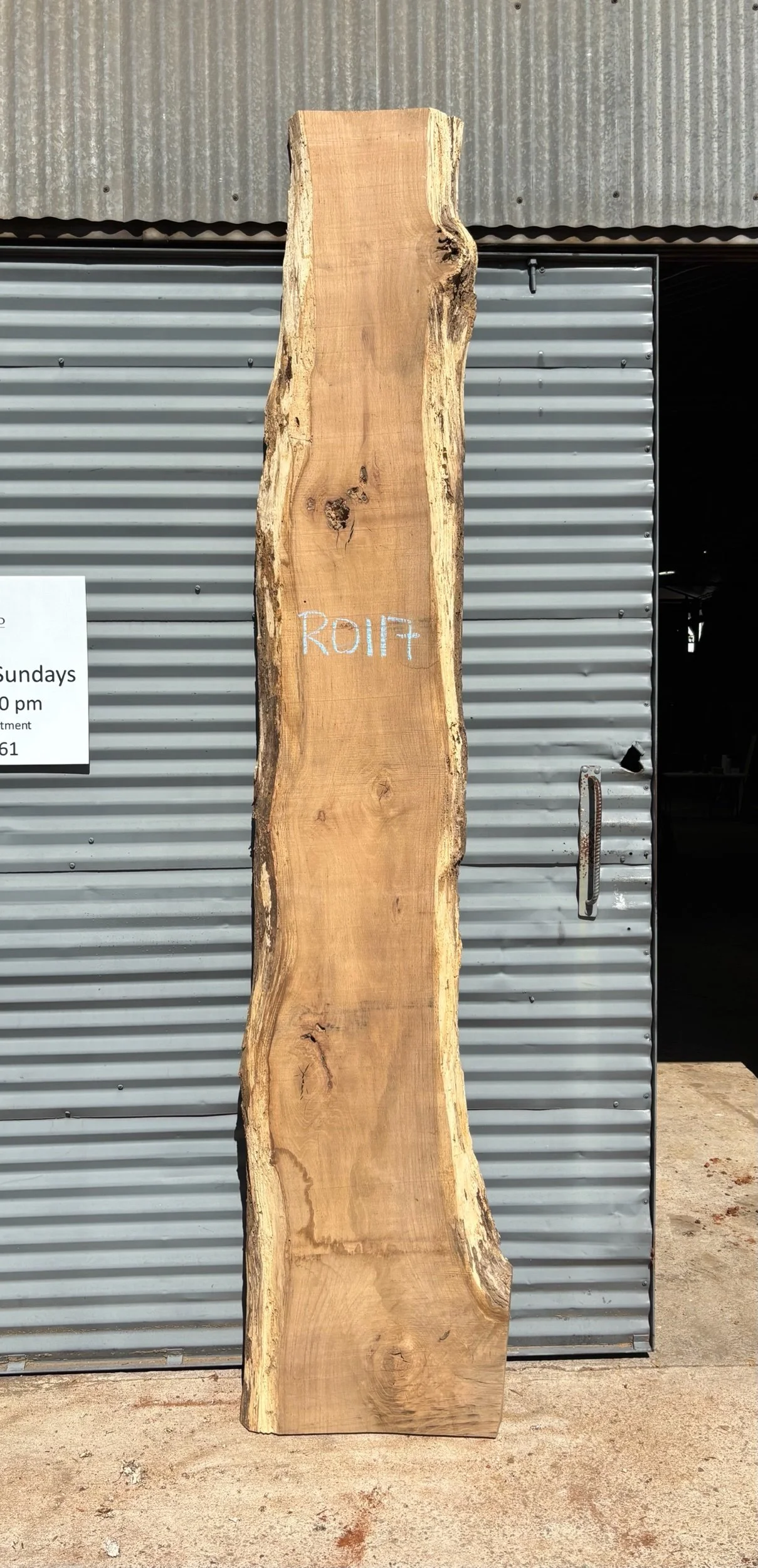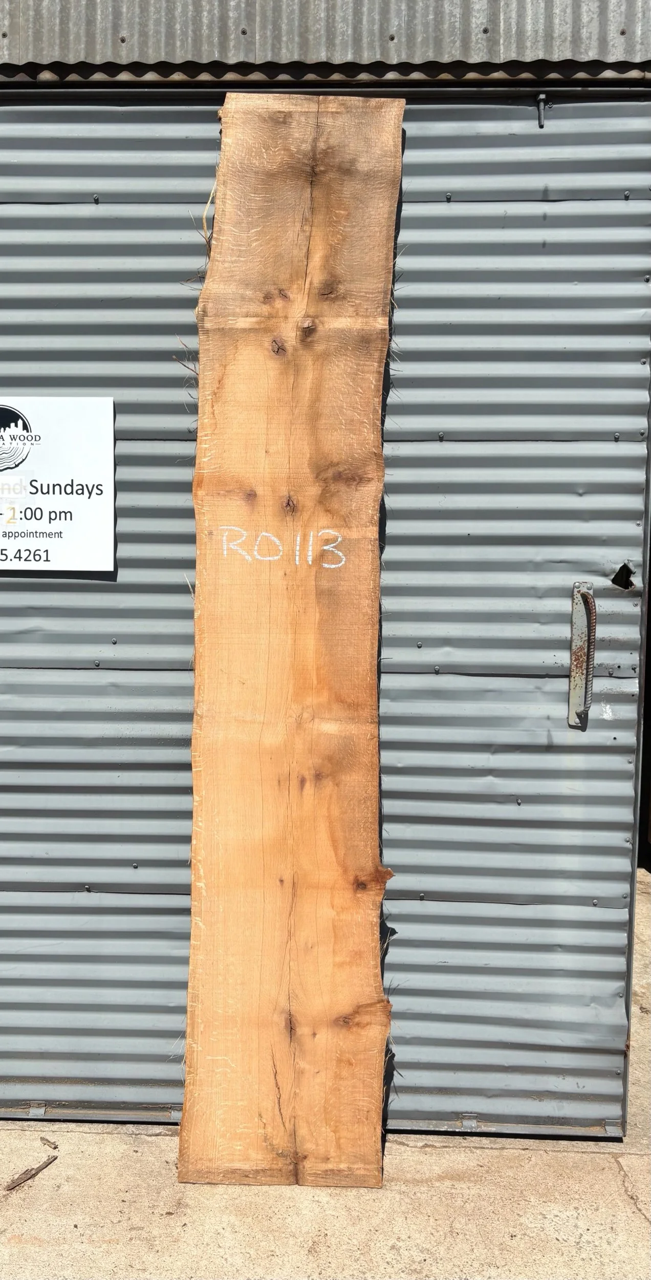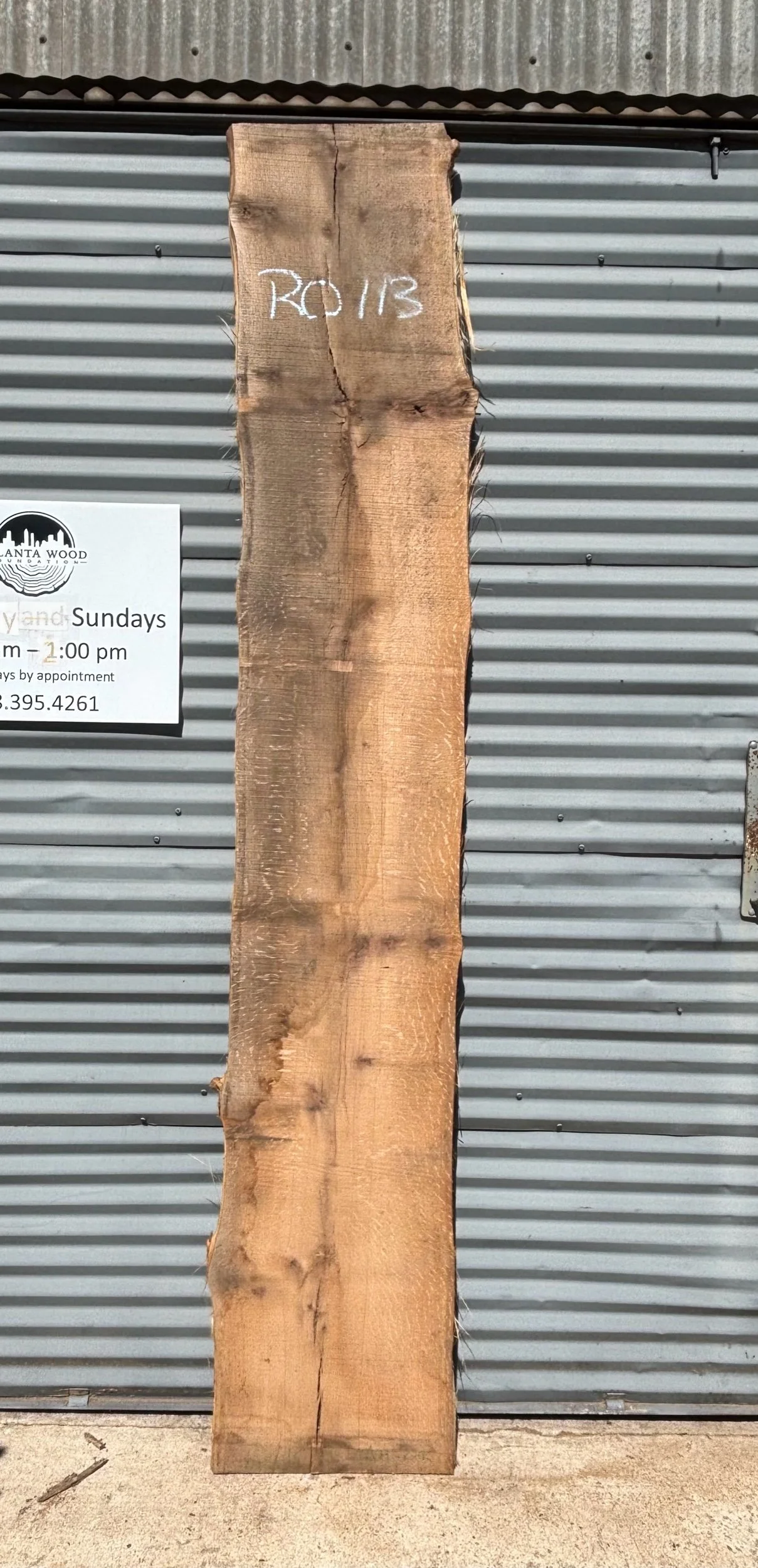 108.25" long x 17"-20" wide x 1.75" thick Red Oak Live Edge Slab.